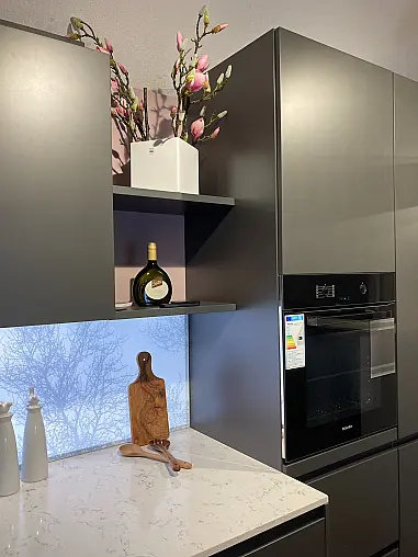 Ballerina GL40195 graphitschwarz Samt-Lack Exklusive grifflose Lackküche mit Silestone 20mm