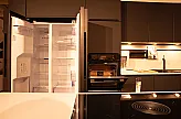 Schüller Moderne Design-Küche mit Geräten von Samsung, Siemens und Bora Hochwertige, moderne Küche in mattem Onyxschwarz mit amerikanischen Kühlschrank