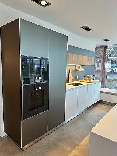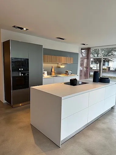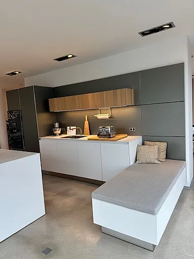 bulthaup B3 Monobloc Nussbaum + Laminat alpinweiss + Aluminium grau Pure Ästhetik