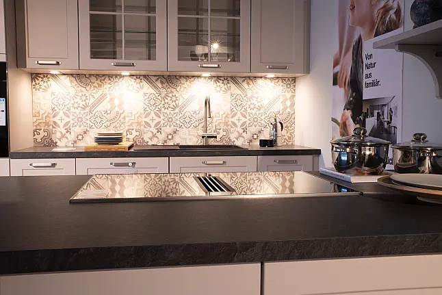 Schüller Vienna Satinlack sandgrau Hochwertige Landhausküche mit Geräten von Miele