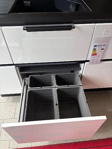 Nolte Küche - Nova Lack Weiß Hochglanz mit schwarzen Griffmulden inklusive Griffmuldenbeleuchtung inkl. hochwertiger Geräte